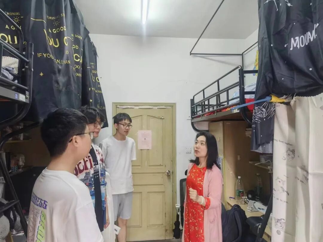 刘璐老师先后前往女生、男生宿舍进行检查。每到一间宿舍,老师都认真查看同学们的住宿环境,排查安全隐患,仔细询问同学们“生活环境感觉如何”“对现阶段课程的学业压力大不大”,以及“对自身未来规划、升学就业选择”等方面的想法,在做出指导的同时耐心解答同学们提出的问题。最后,她叮嘱同学们要在假期离校时做好宿舍电源的关闭,以后有任何的疑惑可以与她积极交流。